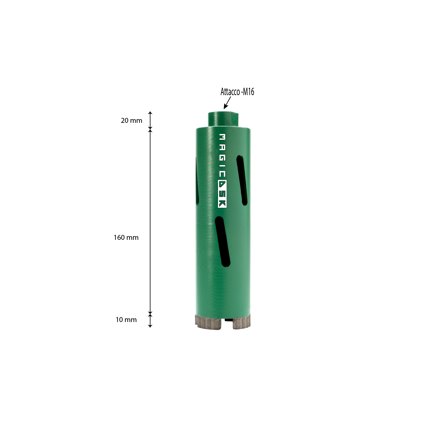 Foretto Laser FL-190 Ø 92 mmMagicDSK FL92190 Corona/Foretto diamantata a saldatura laser professionale, Ø 92 mm, attacco M16, settore H 10 mm, carotaggio max 160 mm, taglio a secco/acqua: cemento armato, cemento,granito, laterizi, pietra